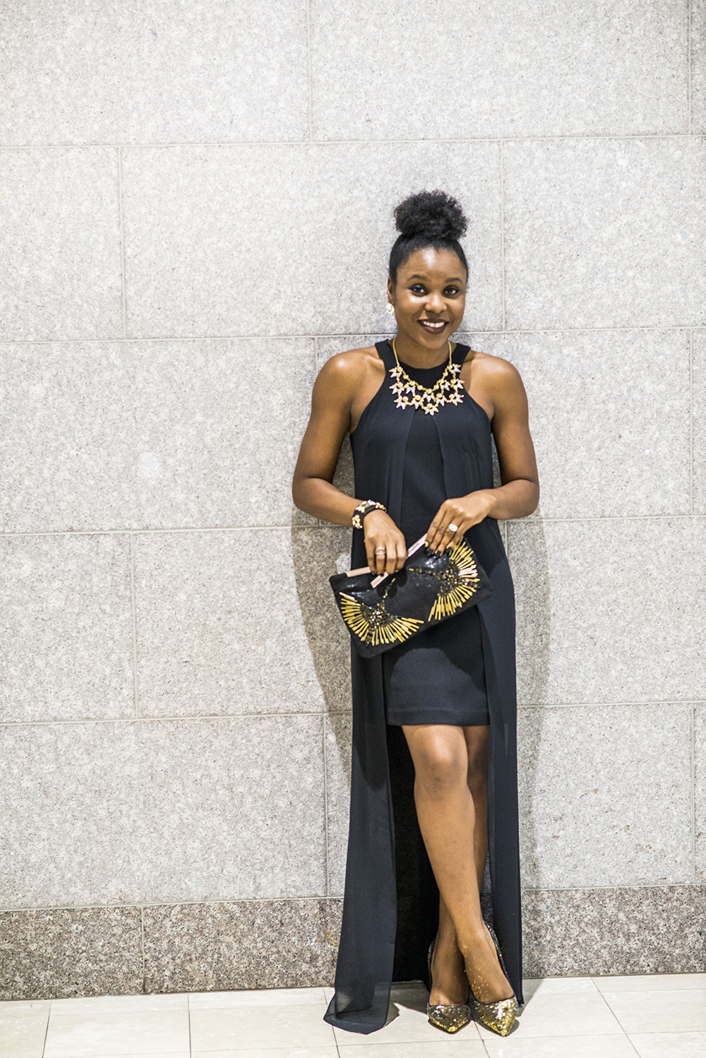 I am wearing the Starbust Drama Necklace which compliments my dress. I added the Starburst leather bracelet which is amazingly priced for a leather product. I finished my look with the Starburst stud earrings and the Miho clutch, a super versatile clutch. Remember you can save 30% off every item you see on this post.