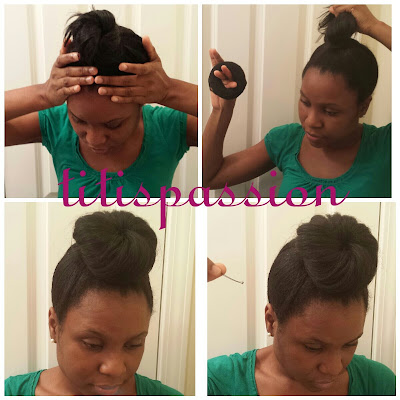 Start with clean washed hair, blow dried hair or air dried too. Following this direction for hair washing routine. I usually omit applying coconut oil until the end because it weights the hair down. Using a band, put the hair in a ponytail. I always place my ponytail facing the front of my head versus the center, just a personal preference. Apply your choice of hold all around your edges. I use a light gel and sometimes I use shea moisture gel souffle. Using a small comb, brush the edges, you can also use pins to secure the hair in the back (usually the problem area). Once in a bun, insert a hairdonut and cover entire donut with your hair. Secure with pins all around and another hair band. You can then apply coconut oil to add shine to the hair. Viola,the whole process takes about 10 minutes.