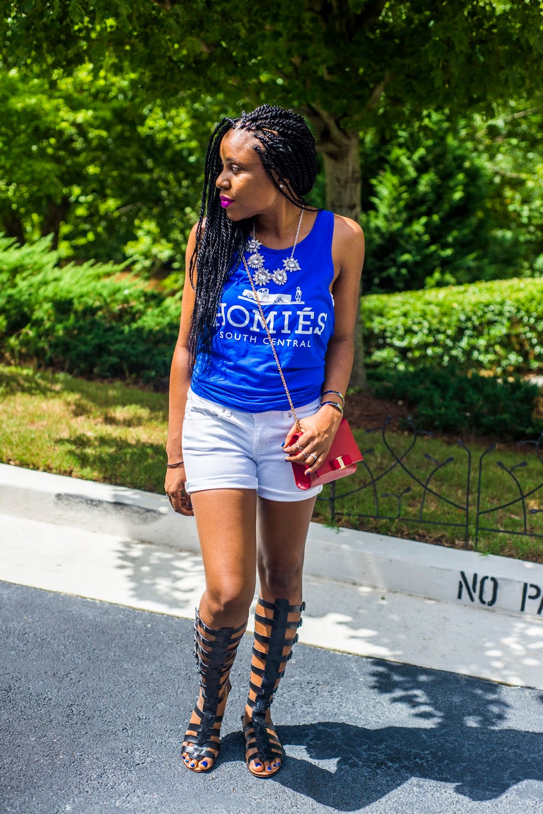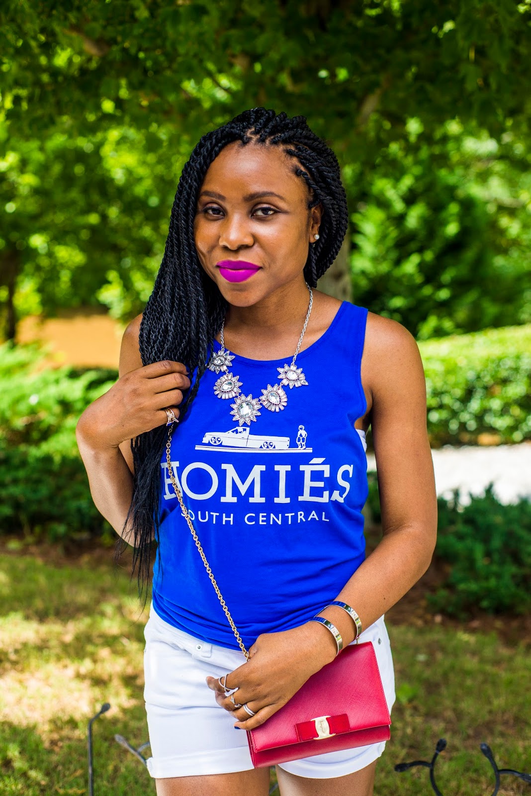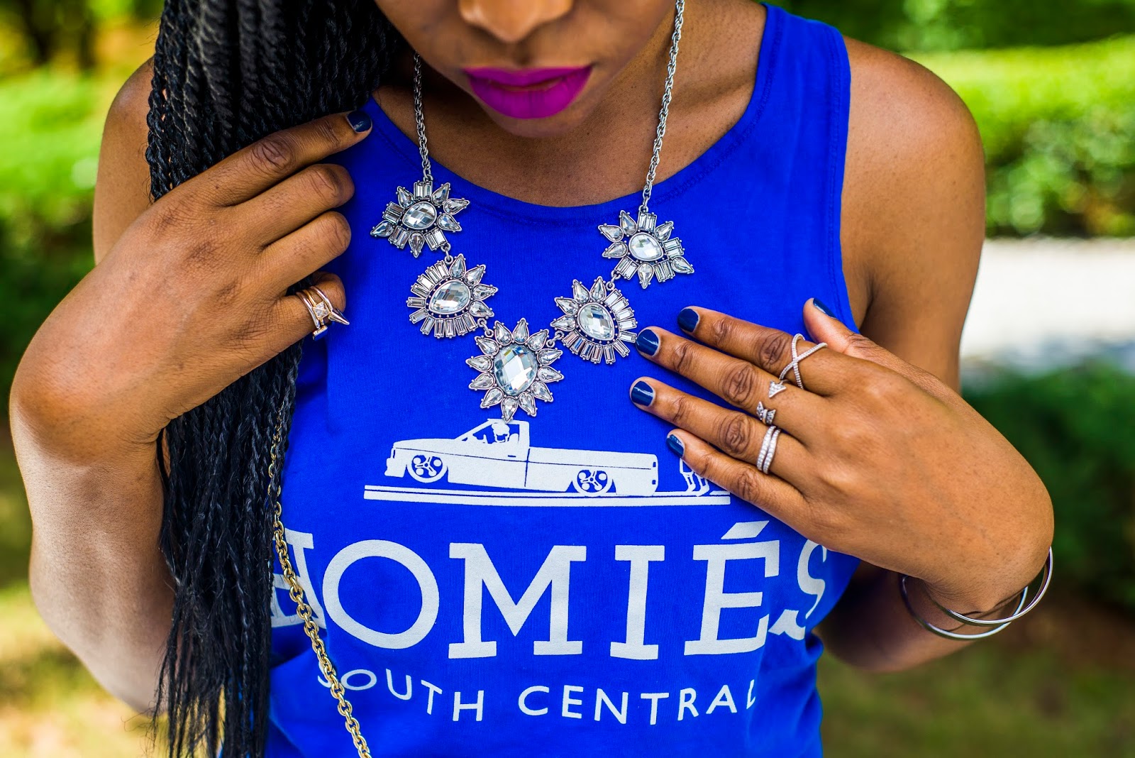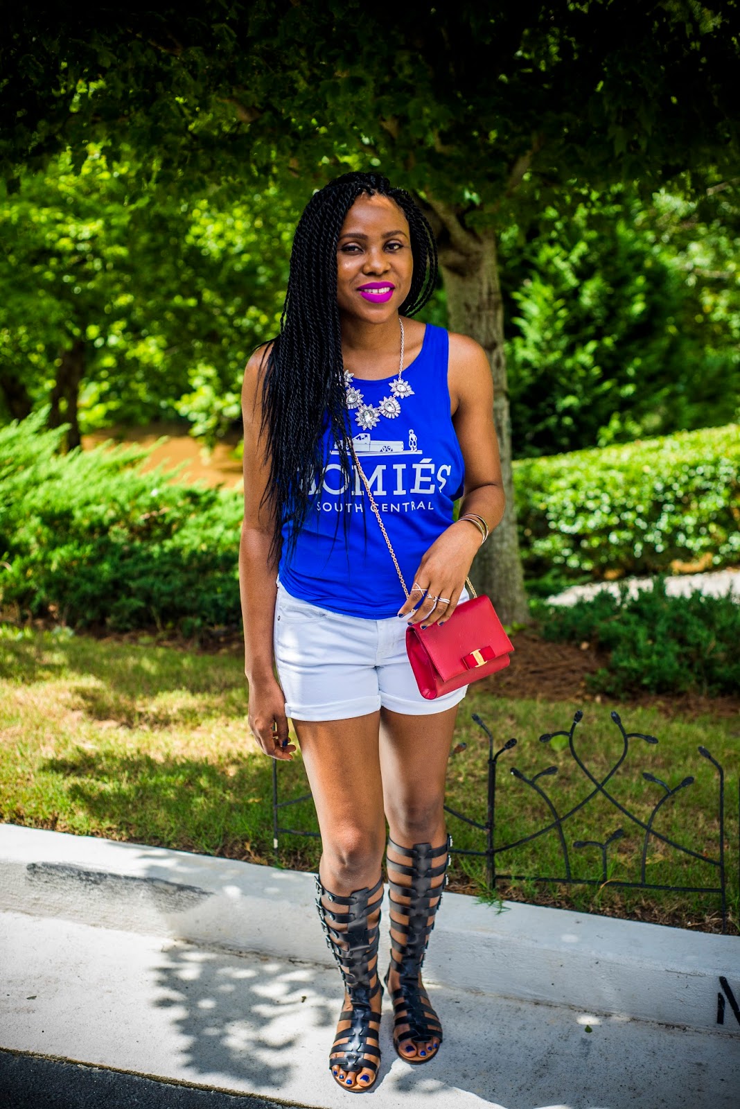 I chose a blue graphic tank and white denim shorts, gladiator flats for a comfortable yet fashionable look. I added tones of accessories to this look with my Rocksbox purchase along with some jewelry pieces I already owned (my wedding bands.)What is Rocksbox? Rocksbox gives you unlimited direct access to designer jewelry on subsription. You can get access from as little as $19/month. You pick your favorite pieces and they are sent to you and a return envelope is included for you to return them or there is the option to purchase any of the pieces you love. Find out more about it here and get one free month of jewelry by clicking here.