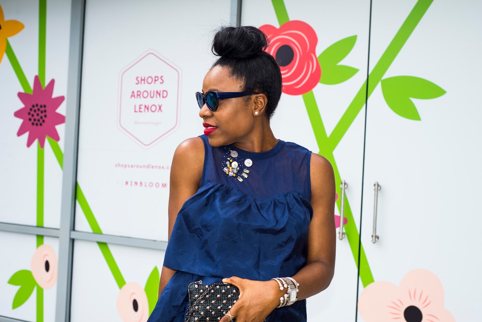 This skirt like the one I previously wore here is by Ladyee Boutique. This affordable skirt is available in other gorgeous colors too. I decided to pair my skirt with this faux leather crop number by Zara. I also had fun with it in this navy embellished silk blouse. I finished my look with an old favorite suede pump by Schutz and my favorite studded clutch. I chose a statement earring over a statement necklace which is another fab option. Overall I loved the edgy yet girly look and as always, what do you think of the look?