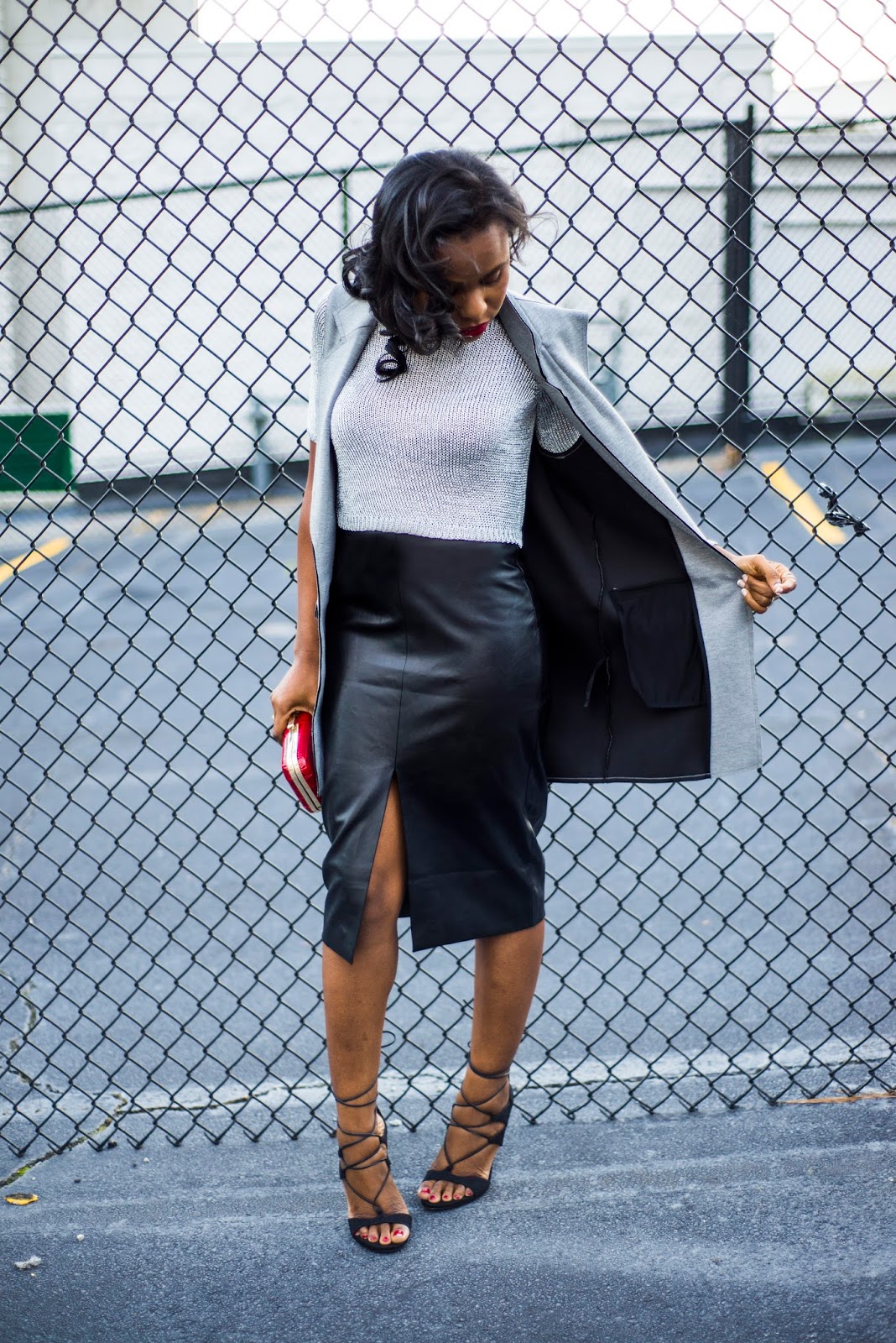For today’s fashion post, I paired a faux leather skirt by Topshop with a metallic crop sweater (which has sparkle, so perfect for a night event.) I was going for a neutral theme so I wore my strappy heeled sandal by Stuart Weitzman which is now marked down at an awesome price! I chose a vest as a warm layer to complete my outfit. I am carrying the Rose clutch by F &W Style (They are having a 20% off SALE on all bags now.) I am giving away a brand new red rose clutch to a lucky reader on the 10th of December. See the rules here to enter to win. I hope you have a fantastic week and as always what do you think of my look?