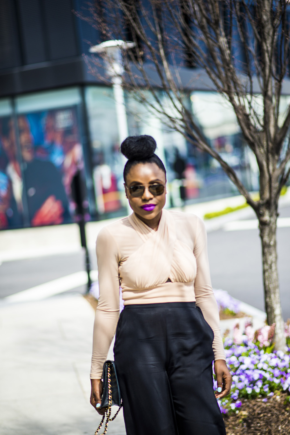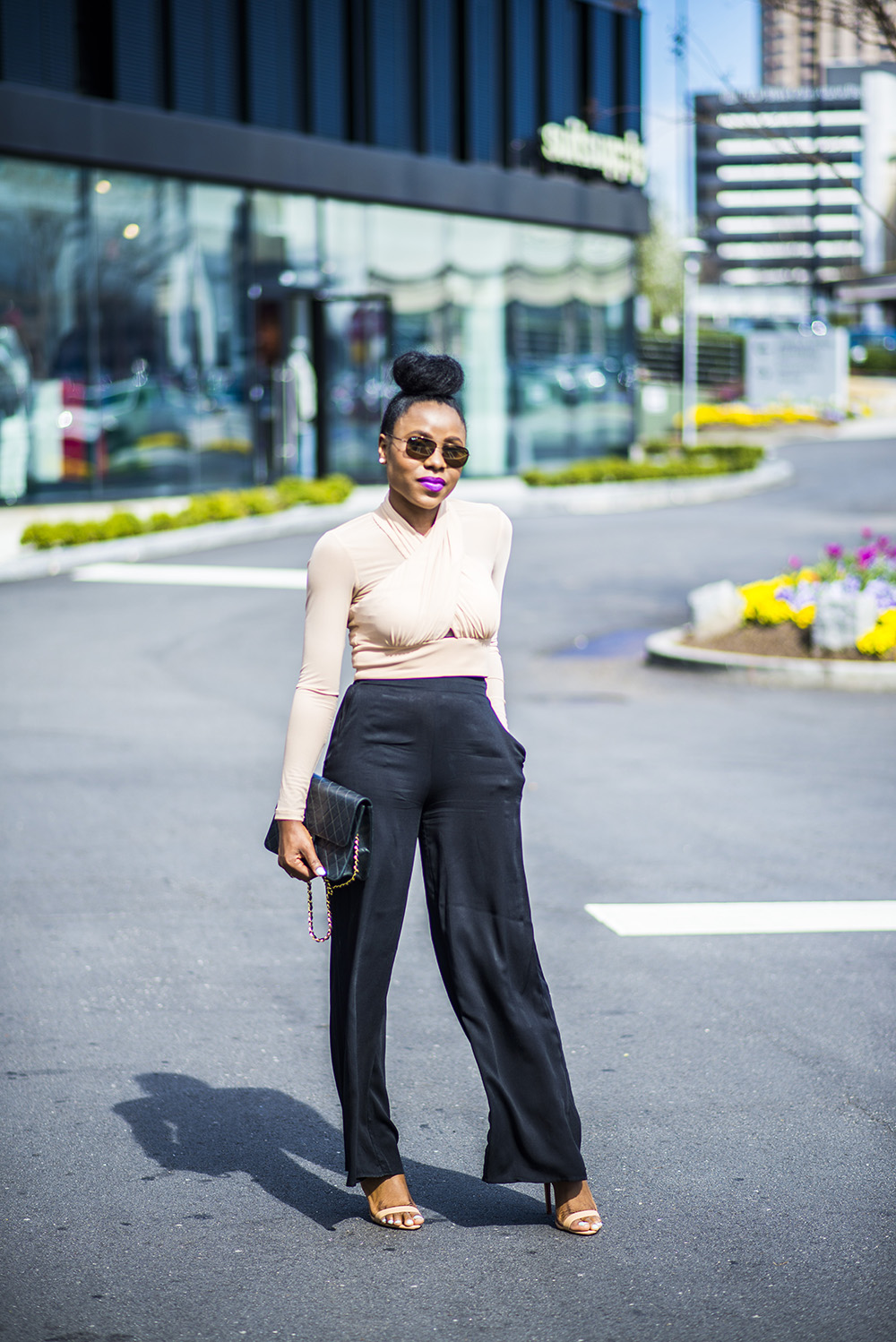 Top: Bardot similar here| Pants: Bloomingdales (old) similar here| Shoes: Schutz similar here| Purse: Chanel (old)similar here| Sunglasses: Ray Ban similar here| Lipstick: MAC Recollection|