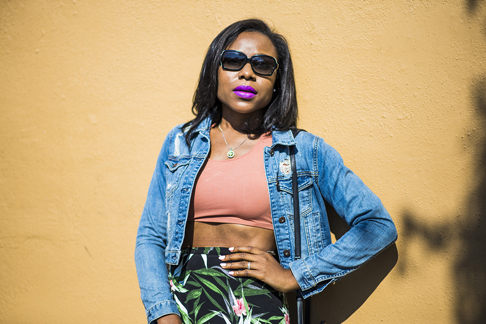 Crop top: Forever 21 similar here| Tropical floral maxi skirt: Forever 21 similar here| Sneakers: Adidas similar here| Denim Jacket: Forever 21 (sold out) similar here| Sunglasses: Chanel (old) similar here| |Necklace: Misayo House similar here| Bag: Reed Krakoff old similar here|Lipstick: MAC|