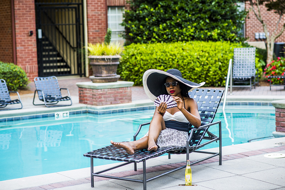 My one-piece is by Topshop, Sunglasses by Illesteva and the hat (loan) similar one here.
