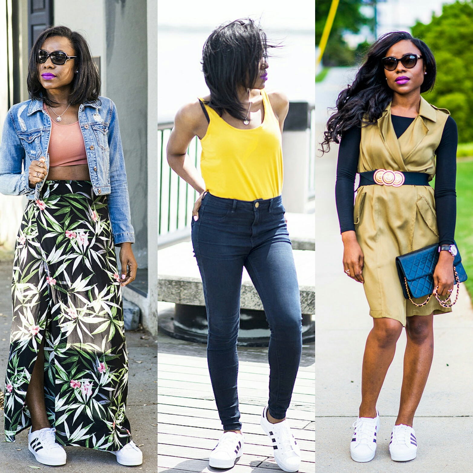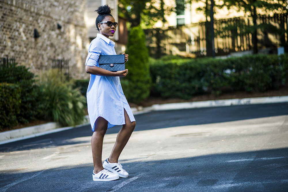 Shirt dress: NastyGal similar here| Sneakers: Adidas similar here| Bag: Chanel (vintage) similar here| Sunglasses: Ditto buy here|Necklace: Misayo House similar here| Lip stick: MAC Recollection|
