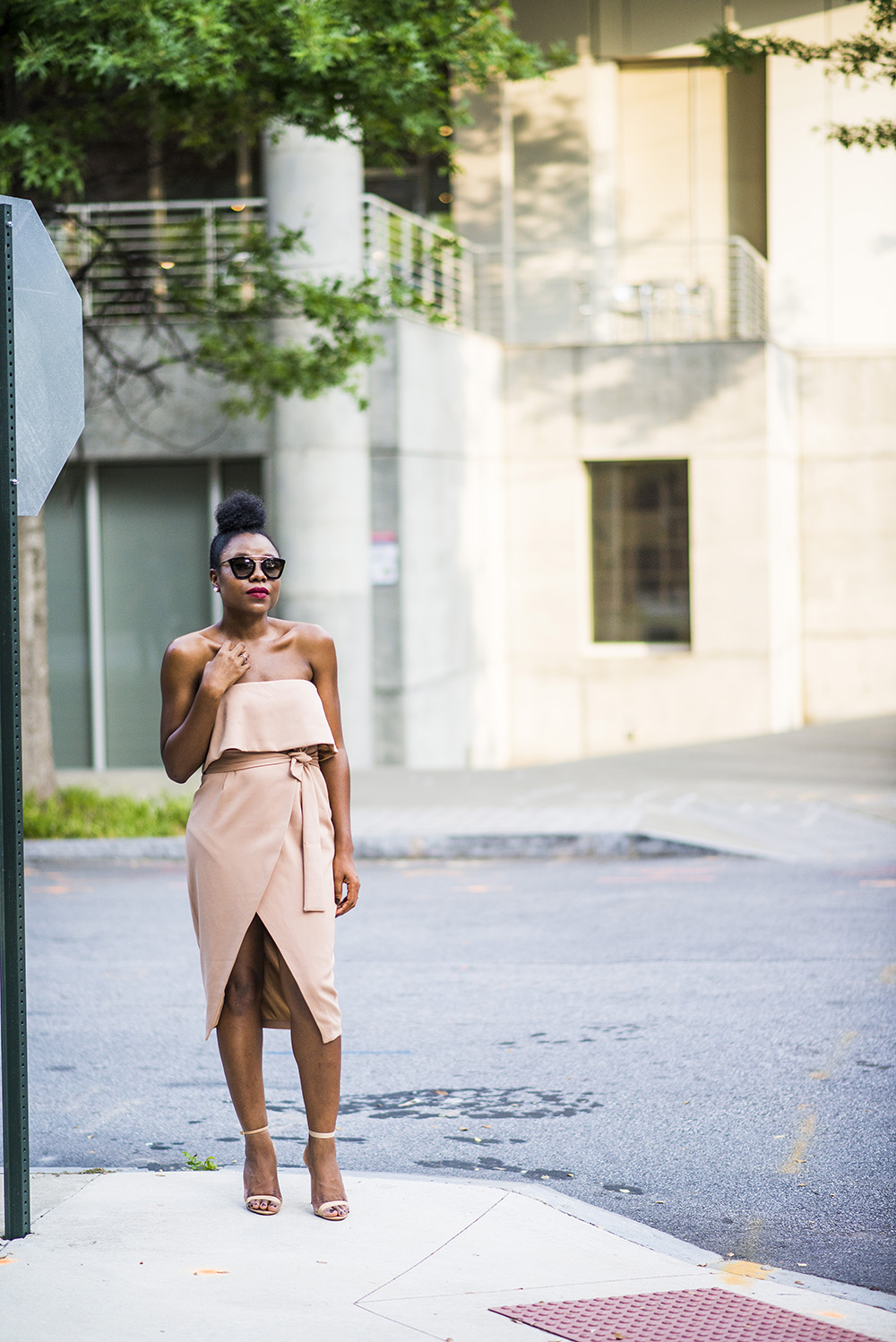 Thank you for stopping by the blog today. Yay for fashion Tuesdays!! I love strapless dresses. I have always been drawn to them because they accentuate a different part of the body, the shoulders! We all know shoulders are super sexy too. With the cold shoulders/ off shoulder trend/ one sleeve trend, the shoulders are front and central these days on the runway. A stylish nude dress like the one I have on gives that understated classy look.