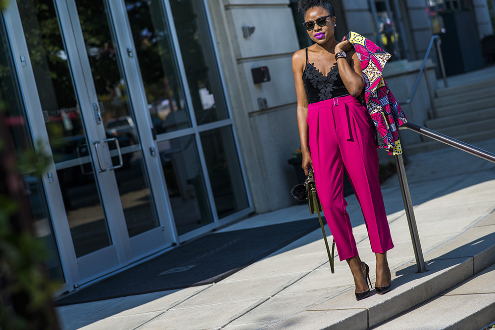 Love how you styled the jacket. Pairing it with the pink pants was perfect.