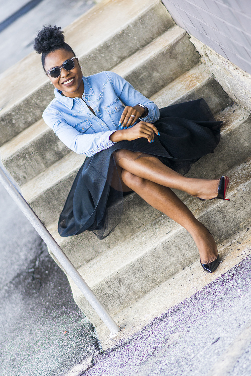 There is something so grand about tulle skirts, the reason why I find myself always gravitating towards them. This black one by Maje is currently on sale. My denim shirt by Topshop is $20 but it is currently sold out, check your local stores, you might be in luck. Check the end of the post for other options.