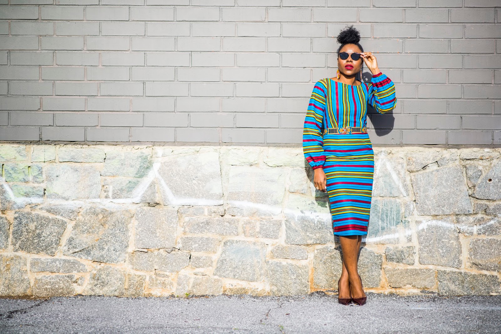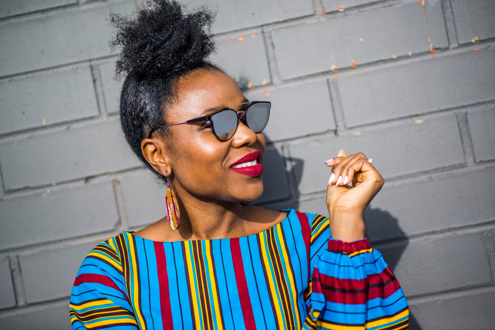 Dress: Yetunde Sarumi| Earrings: Kuvaah| Shoes:Manolo Blahniks (old)| Sunglasses:Ditto| Lipstick:ColourPop|Nails:Impress|