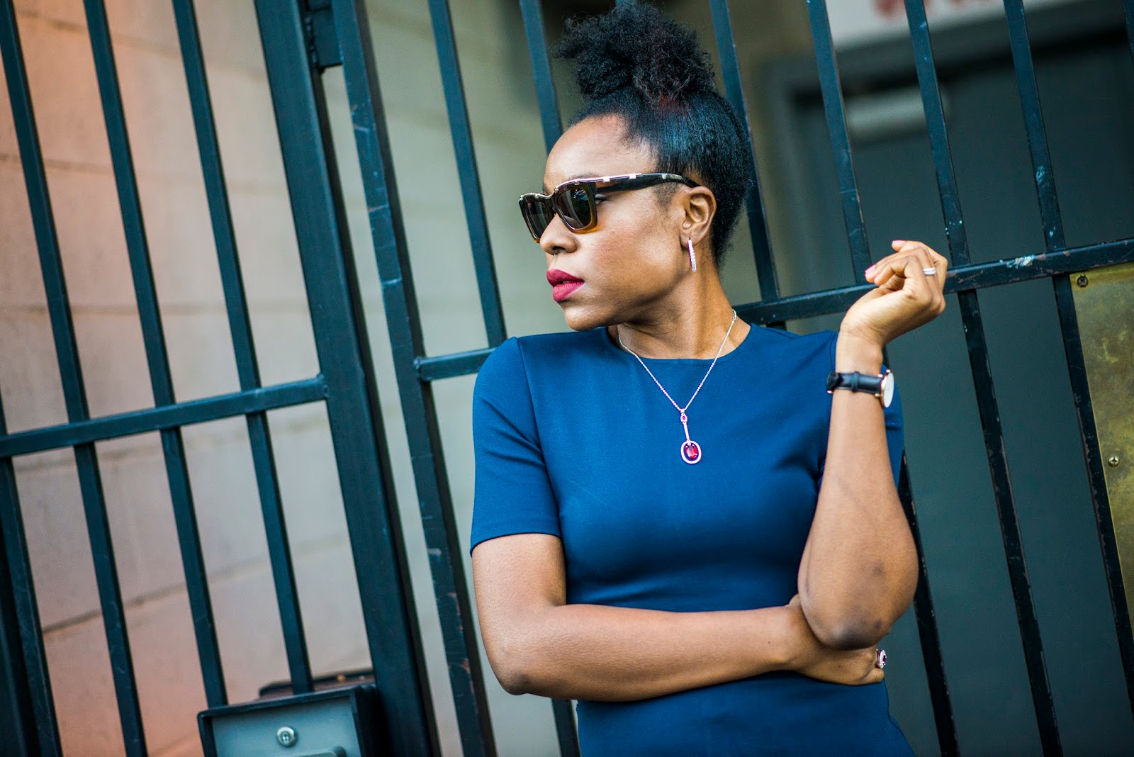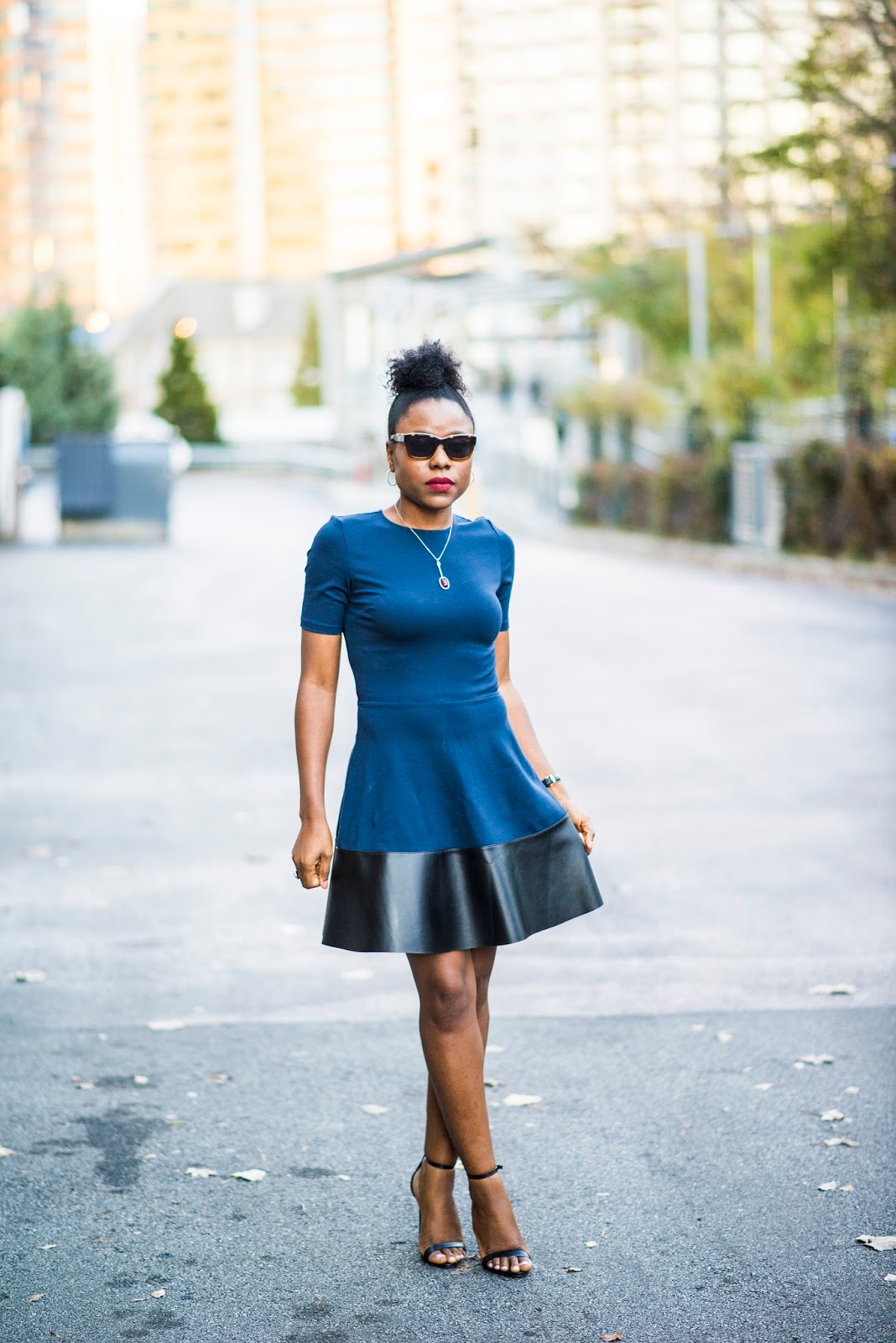 How are you doing? I am ending the week in a blue dress. Temperatures are so low right now, I can’t wait for Spring to be here already. Winter is a great time to incorporate leather into your outfit like this fitted dress by Aqua which also comes in black and if you like matching outfits with your daughter, there is the mini version. It is on sale on too ladies. I am clearly having a faux leather moment, my post on Monday featured a faux leather skirt.