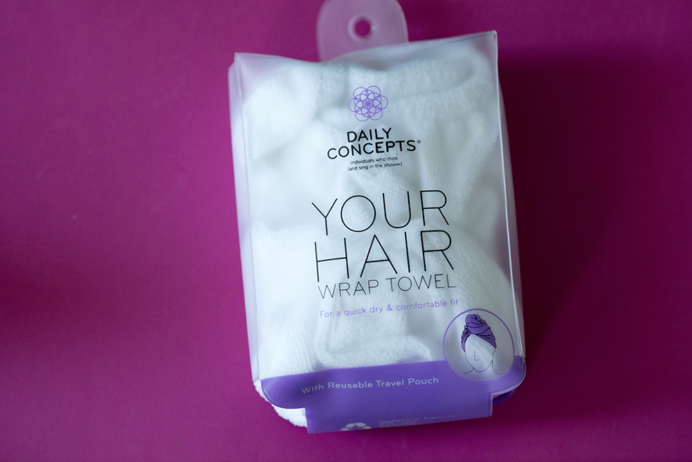 Terry cotton head towel that it adjustable and can be used in the shower or when you are washing your face. I love that I can use it and that it also works for my 3 year old too. It says it cuts down blow-dry time too but I am yet to use it after washing my hair. It retails for $18.