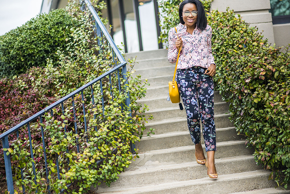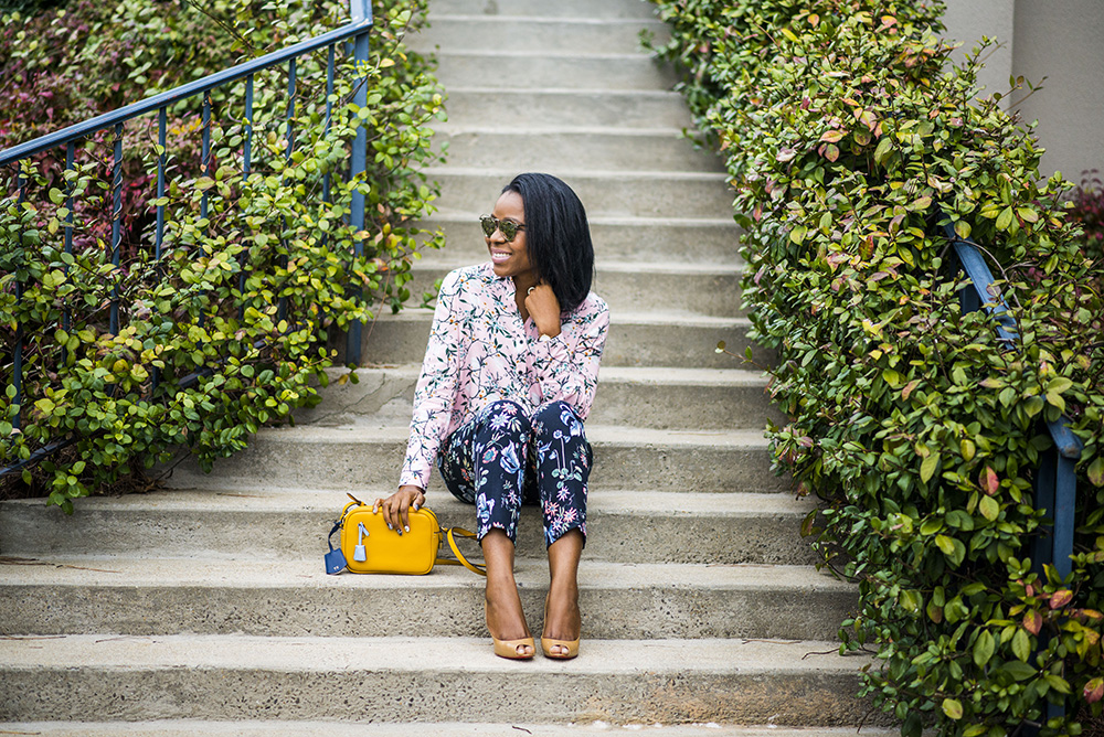 How are you doing? Thank you for stopping by, I hope you had a nice weekend? I am kicking off the new week with another Spring fashion look. Florals and spring go hand-in-hand after all so I decided to show how you can mix floral prints effortlessly. This look would be perfect for you this Spring and it would can be worn beyond 9-5. My floral blouse is by Topshop while my cropped floral pants are by Ann Taylor. My pants are currently at a steal (under $50), so order yours before the sale is over.