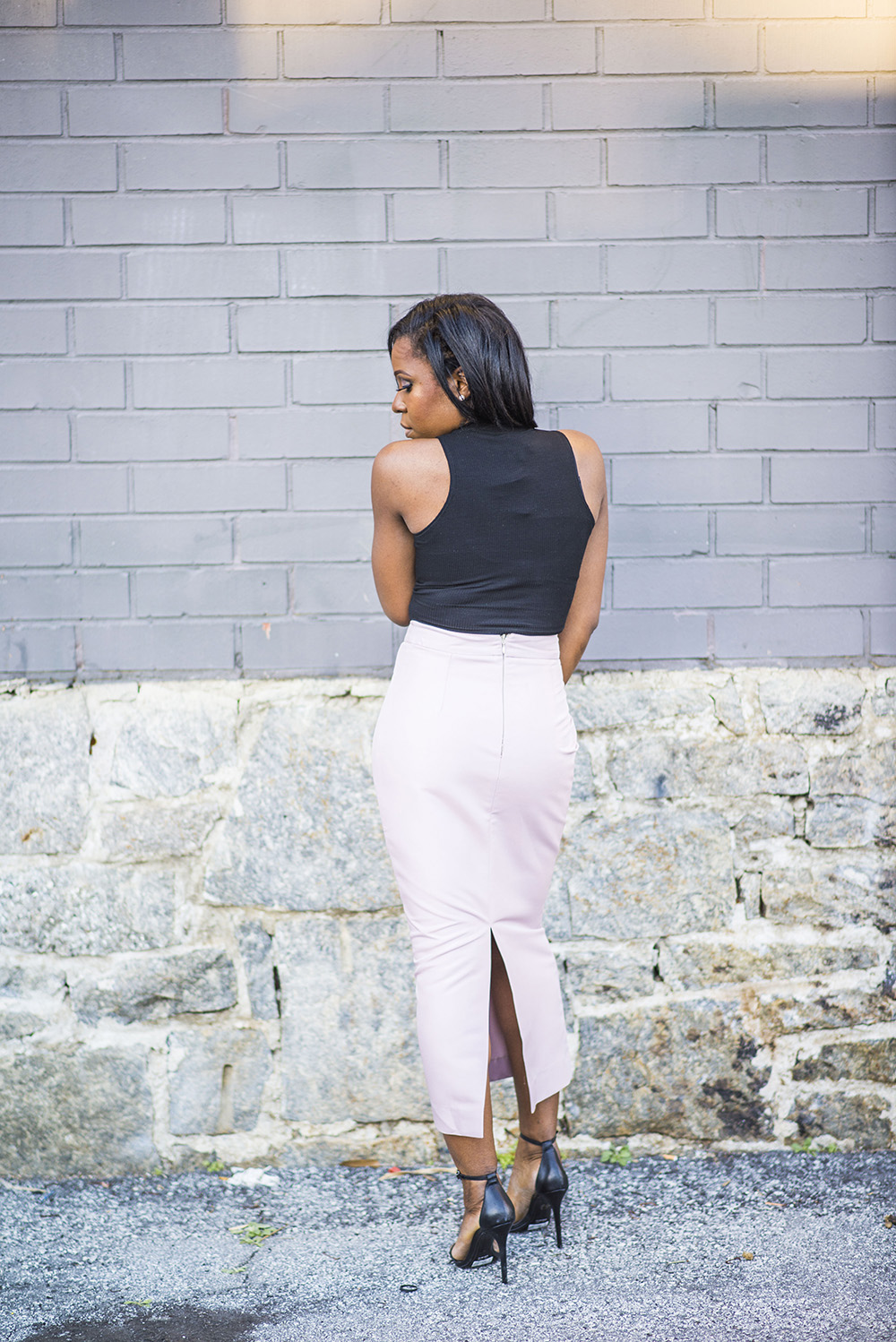 While I love my spring colors, I love to mi dark colors like black for some of my Spring looks.My skirt was on sale for $22 and I am hoping it comes back on Asos. My crop top is by Aqua. My shoes are by Schutz a classic pair of black sandals, here is a more affordable similar option.