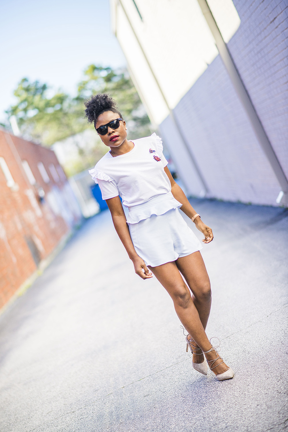 It’s the weekend and I am ready to get it started! I am ending the week in a casual look today. Even though it is still officially Spring, the 80 degree temperatures in Atlanta is saying otherwise. While basic cotton, khaki or denim shorts are usually the go to during the warmer months, I was searching for something different when I came about this ruffled shorts by Asos. It is clearly Asos week on the blog:-)