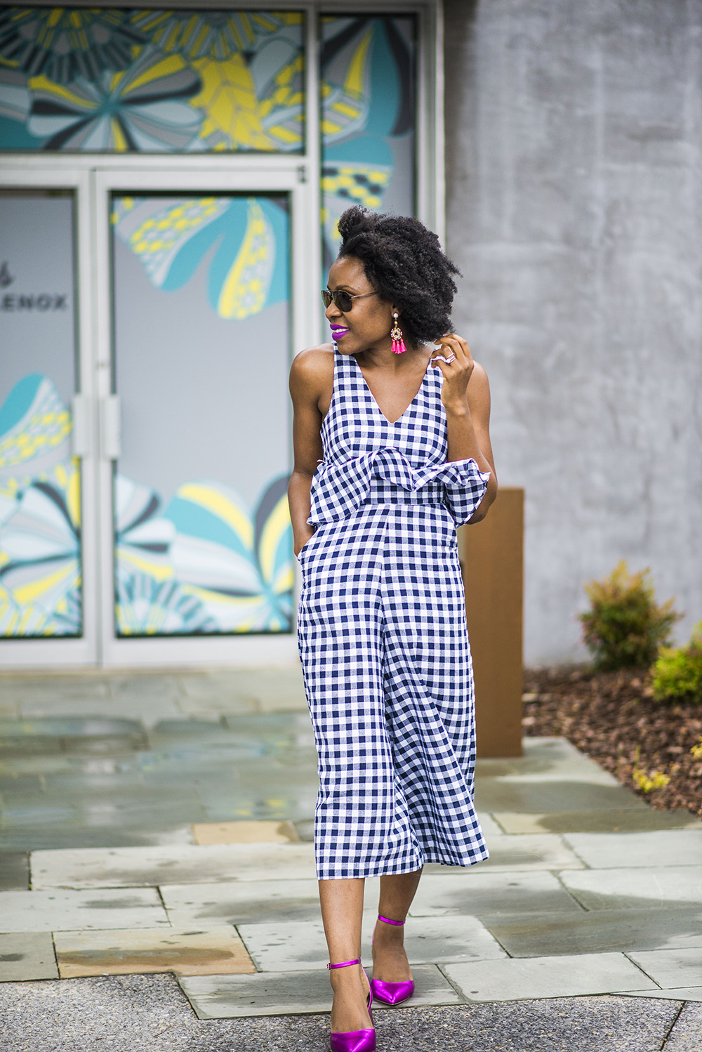 How are you doing? Thank you for taking the time to stop by the blog today. I am sharing one of my favorite current fashion trends today, gingham. Gingham has always been around but the last year, it’s been a favorite on runways. I have worm a few gingham pieces over the last year, see HERE. I am a jumpsuit lover so finding this perfect gingham jumpsuit that is perfect for Spring and Summer made my day. It’s from you guessed it Asos.com.