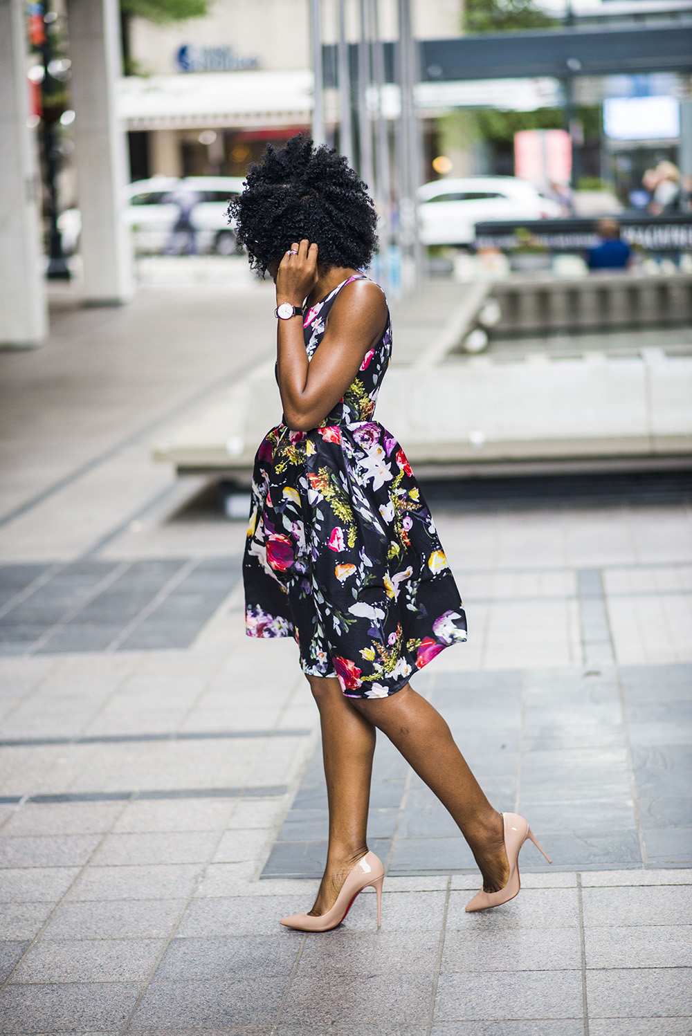 How are you doing? It is hump day and I have an outfit to put you in a good mood. Wedding season is upon us (not for me though, I don’t know anyone getting married and I am bumped about that) so what to wear is on the top of your list. If you are like me and don’t have a wedding to attend, I am sure you have a couple of special events to attend before the end of Summer, so this post is for you too, keep read:-) The best part about today’s post aside from the gorgeous print of the Flower beauty dress that is flattering on most body types, is the price point, its $60!