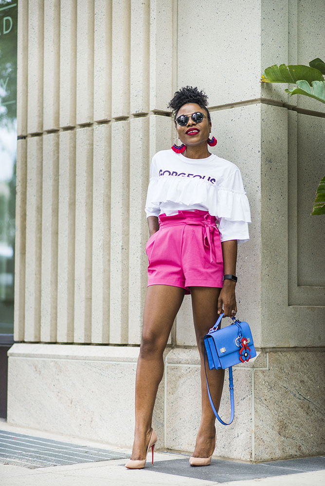 How are you doing? It is Wednesday but I am serving weekend fashion inspiration today. It is shorts season after all so I am sharing an easy way to stylishly wear shorts. Some tend to put shorts in the casual fashion box that definitely isn’t the case. My shorts are from Zara and available for under $30. I paired this pink shorts with a ruffled slogan shirt that can be styled in so many way, it is currently on sale for $23.