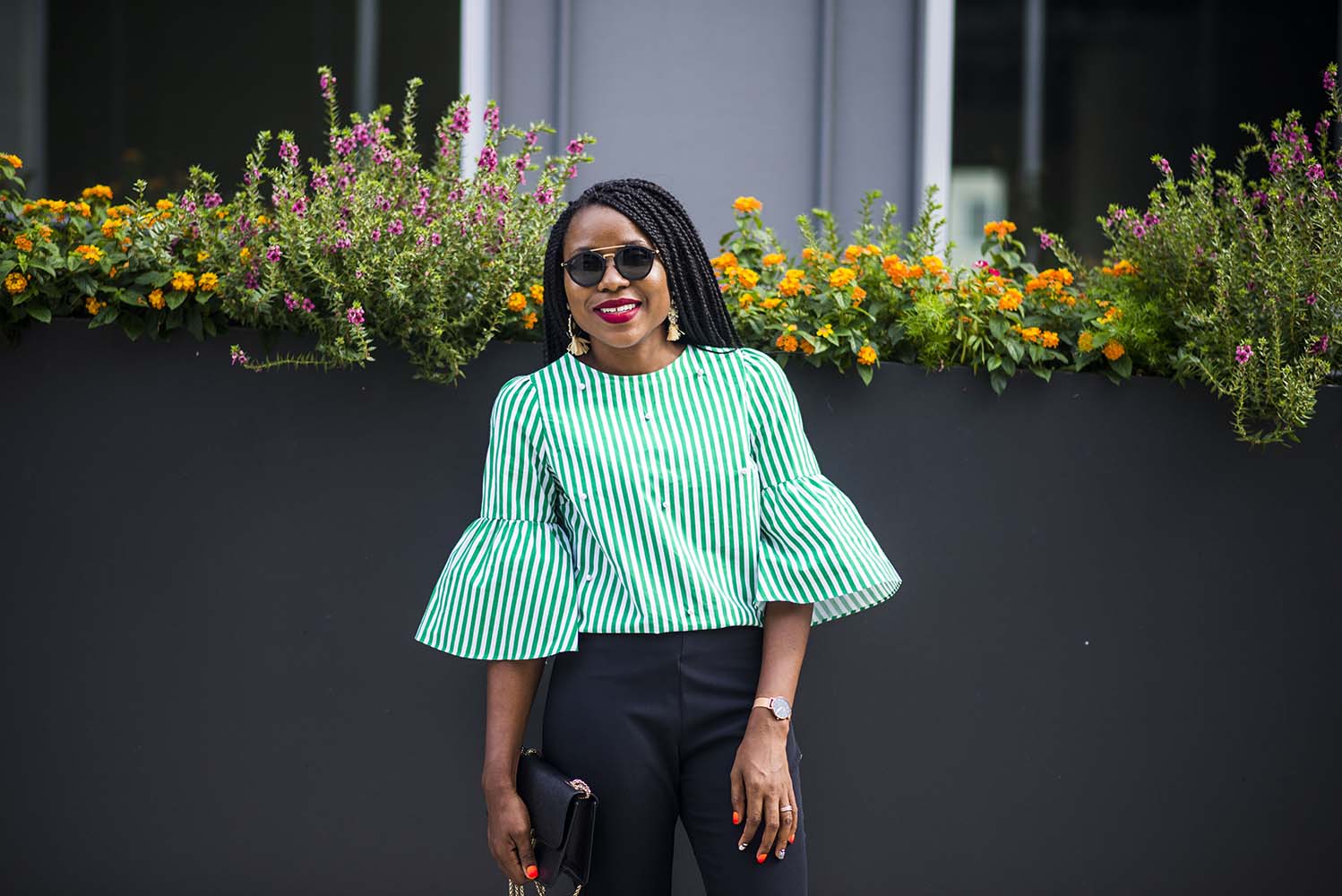 I wore my signature red lipstick by Colouredraine. It is currently soldout but you can try this option by MAC. My earrings are by Baublebar and my clutch a favorite from Henri Bendel.
