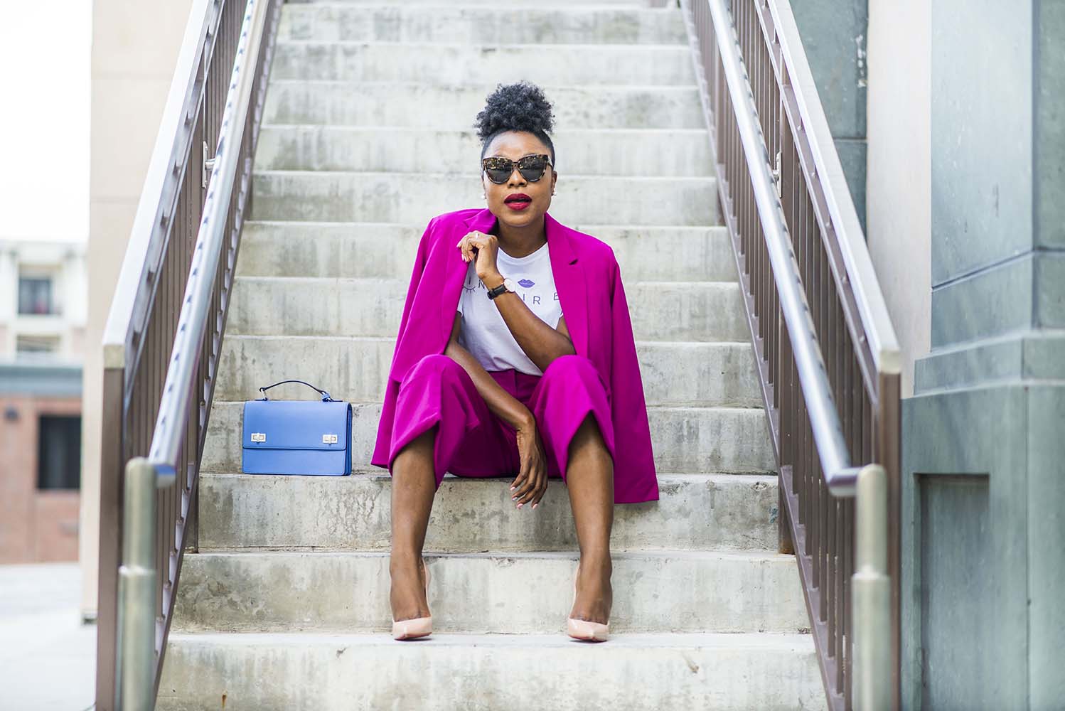 I love sunglasses and I was looking for one perfect for fall season when I found this affordable but chic piece by Le Specs called Liar Liar. It is available for $59. It will be on repeat for the rest of the year:-) My watch is the Classic Sheffield watch by Daniel Wellington, it is the perfect simple every day watch. I am carrying the West 57th Schoolbag by Henri Bendel. You can never go wrong by purchasing the Pigalle pumps in nude by Christian Louboutin. They are truly the perfect nude pumps IMO(in my opinion)