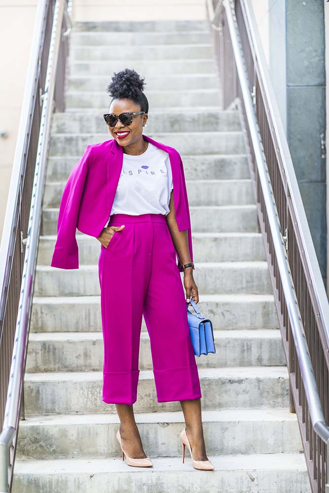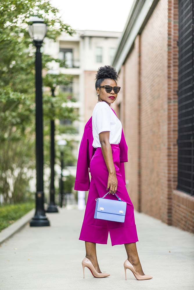 How are you doing? I apologize from the lack of posts last week, I decided to take a week off blogging and social media last week. Sometimes a break is needed to regroup and refocus, which is exactly what I did. Summer is officially as labor day was yesterday but the weather says otherwise in Atlanta so while I will be sharing Fall fashion, I will still be sharing looks according to the weather. Today is a look that works for warm weather but perfect for Fall. Bought as separates, my culottes and jacket by Asos are perfect for work (depending on your work environment) and beyond.