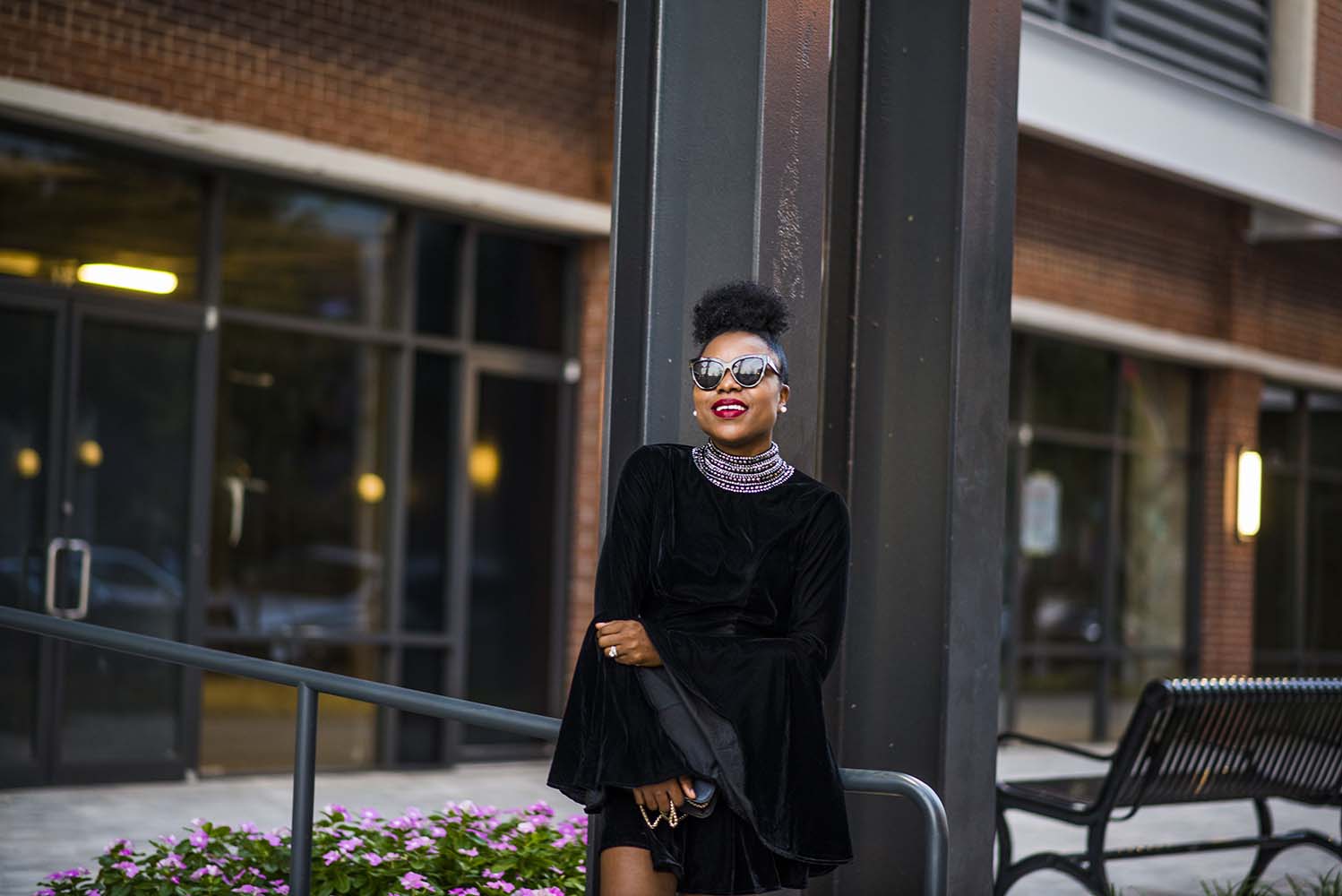 Happy first day of Fall! Even though it is 73 degrees here in Atlanta lol. I am starting off my Fall Fashion Must-Haves series with one of Fall’s staple Velvet. Velvets have always been in for the cooler part of the year so not surprised it was big on runways for Fall 2017. I wore this High neck velvet dress for a fashion show last Saturday and got a lot of compliments on it. I purchased it from Asos, my favorite online shopping website.