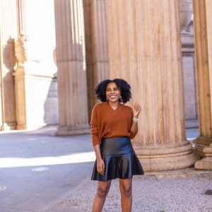 For my second look, I decided to share my take on a classic fall/winter print, houndstooth. My blazer was a gift from BBDakota and my vegan leather pants too. You can get my houndstooth blazer now for under $100 and my pants for under $55. I found my houndstooth mesh turtleneck from White House Black Market recently. I had fun putting this look together.